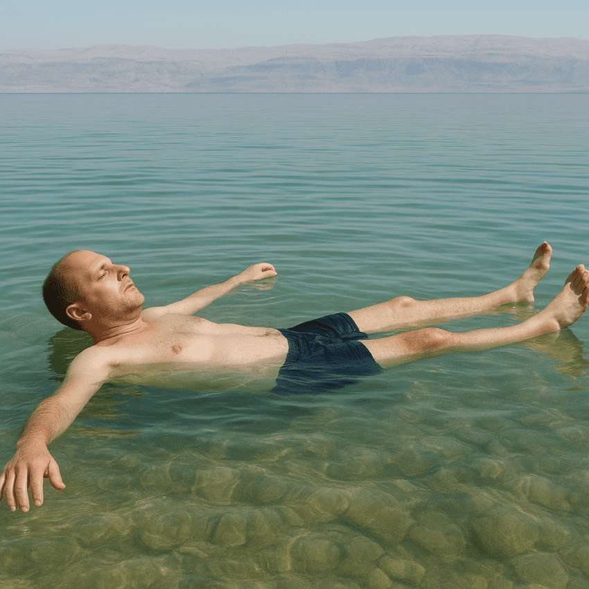 W standardowej wodzie słodkiej średnia gęstość człowieka nieco przewyższa gęstość wody, dlatego ludzie muszą wykorzystywać umiejętności pływania i odpowiednią pozycję ciała, aby się nie zanurzyć całkowicie. Jednak w przypadku wód o zmienionej gęstości, jak Morze Martwe, warunki stają się szczególnie sprzyjające do unoszenia się bez większego wysiłku.